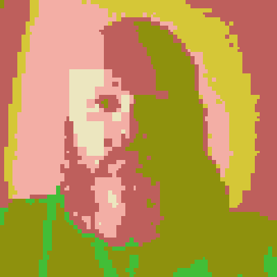 Basically, it will take recursively divide the picture over time. Each time, it will find the node with the largest error (real image color compared to the current random color) and split it in 4, assigning each to the nearest random color from our palette.